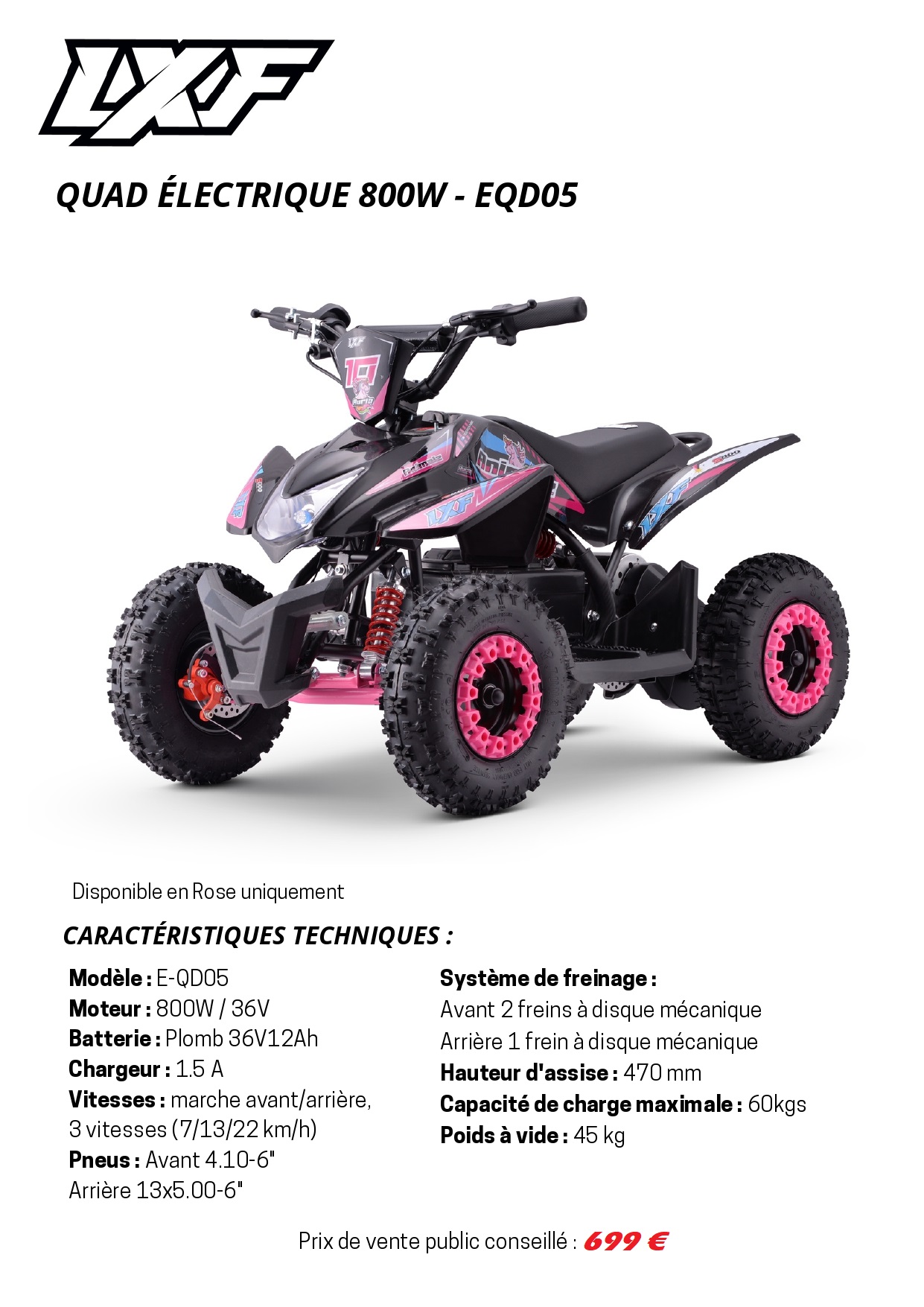 Pocket Quad Électrique LXF Motors 800W Version S – Pour jeunes pilotes avides d’aventure