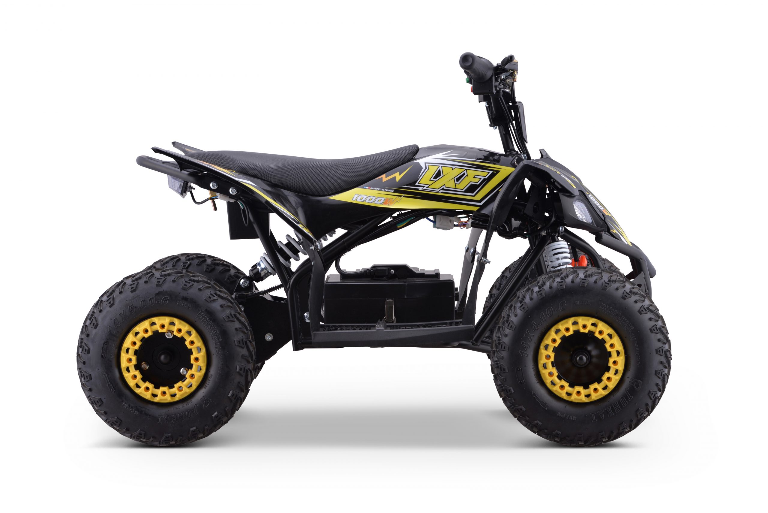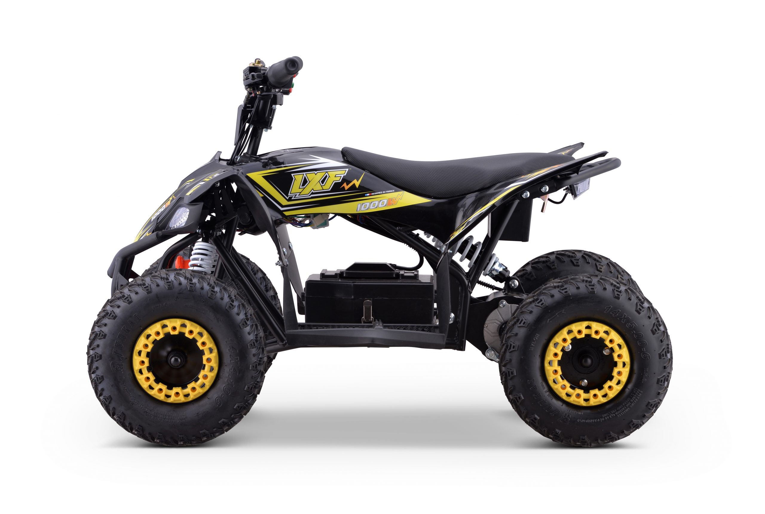 Découvrez le Quad Électrique LXF 1000 w , idéal pour les jeunes aventuriers en quête de sensations fortes ! Conçu pour offrir sécurité et performance, ce quad électrique jaune se distingue par sa puissance de 1000w et ses roues de 6 pouces, parfaites pour une conduite stable et agréable.