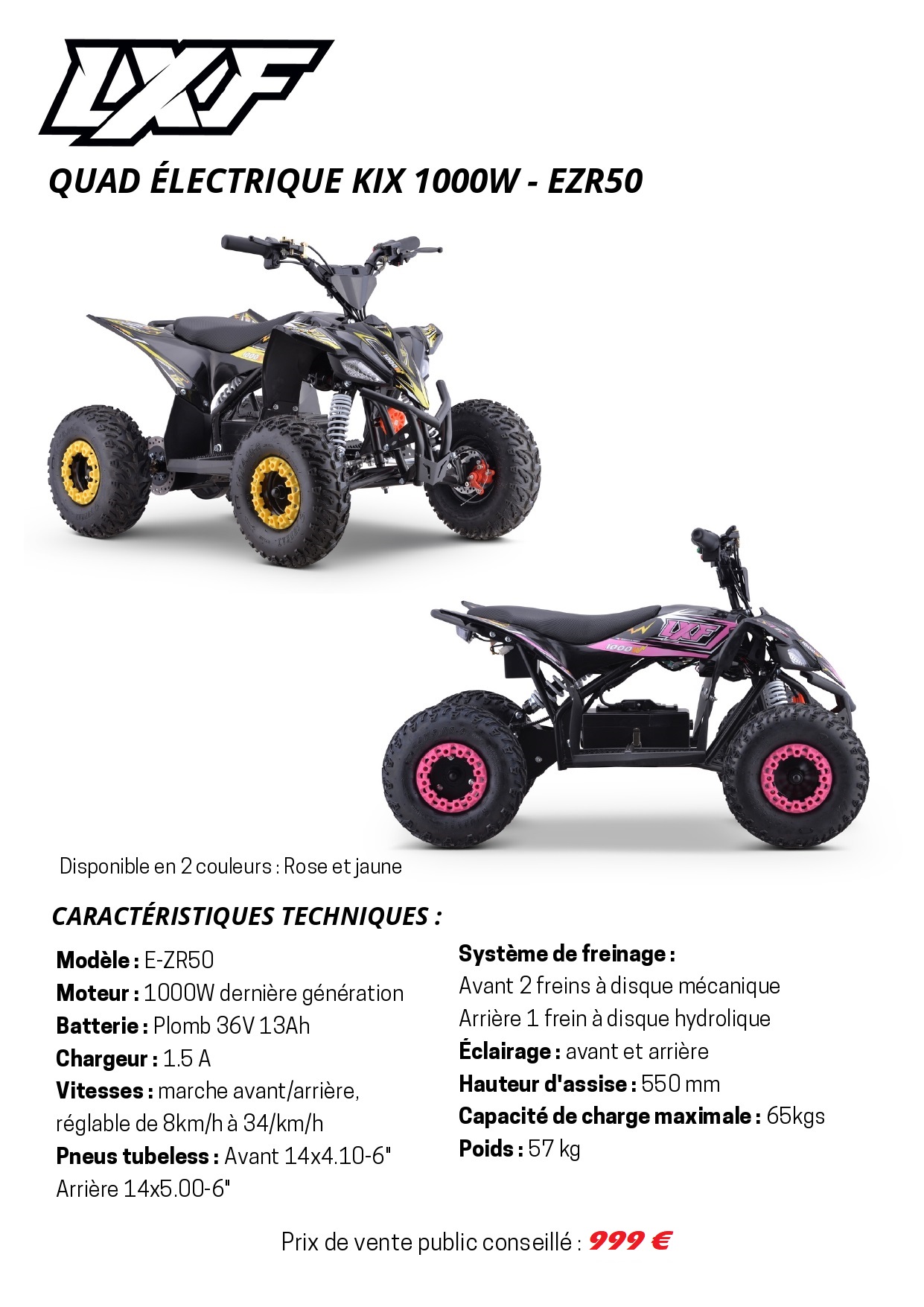 Avec le quad électrique LXF 1000 w, offrez à votre enfant une expérience de conduite sécurisée et excitante. Parfait pour les terrains variés, ce quad est le compagnon idéal pour les petites explorations et aventures. Ne manquez pas cette opportunité de rendre chaque sortie en plein air mémorable !